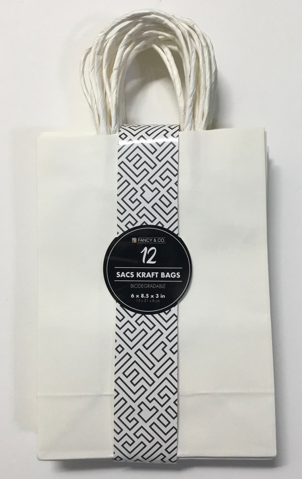 12PK WHITE KRAFT TOTE BAG WITH TWISTED KRAFT PAPER HANDLES